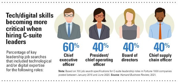 The search for tech and digital skills in job roles when recruiting was rising before the pandemic, but research shows that some top-level positions have been neglected in the process. In an analysis of more than 100 search specifications for C-suite positions in Fortune 1000 companies across a broad range of industries, the authors found that technological and/or digital skills were mentioned unevenly.