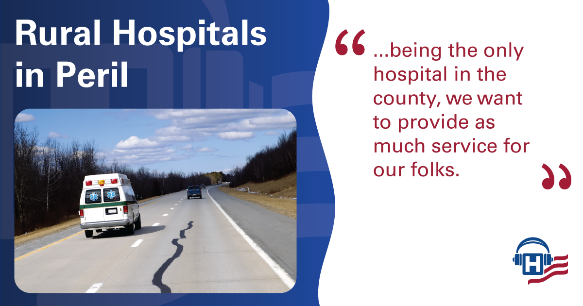 In this podcast Jeff Subler, president and CEO of Wayne HealthCare in Greenville, Ohio, discusses the unique challenges facing rural communities and rural hospitals, the impact closures have on the communities they serve, and the role Congress must play in extending programs such as the Low-volume Adjustment that support rural hospitals.