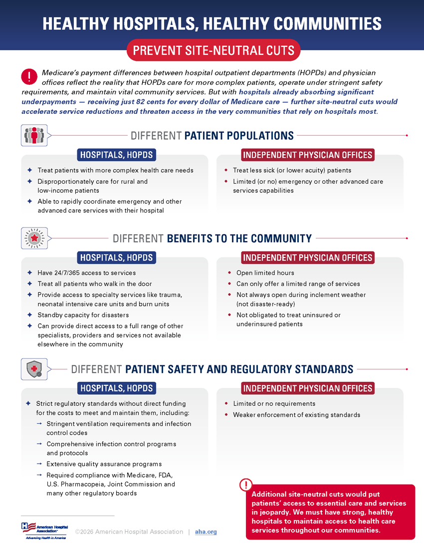 Fact Sheet: Healthy Hospitals, Healthy Communities Prevent Site-Neutral Cuts: Medicare’s payment differences between hospital