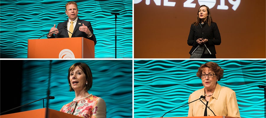 “Over the years, AONE has expanded its opportunities, programs and recognition to encompass all levels of leaders,” noted AONE Board President Mary Beth Kingston, addressing nearly 4,000 attendees. She said the new name “reflects what AONE is about and what nursing leadership has become.” The organization will continue to focus on its core initiatives — providing education, advocacy and community, she said.