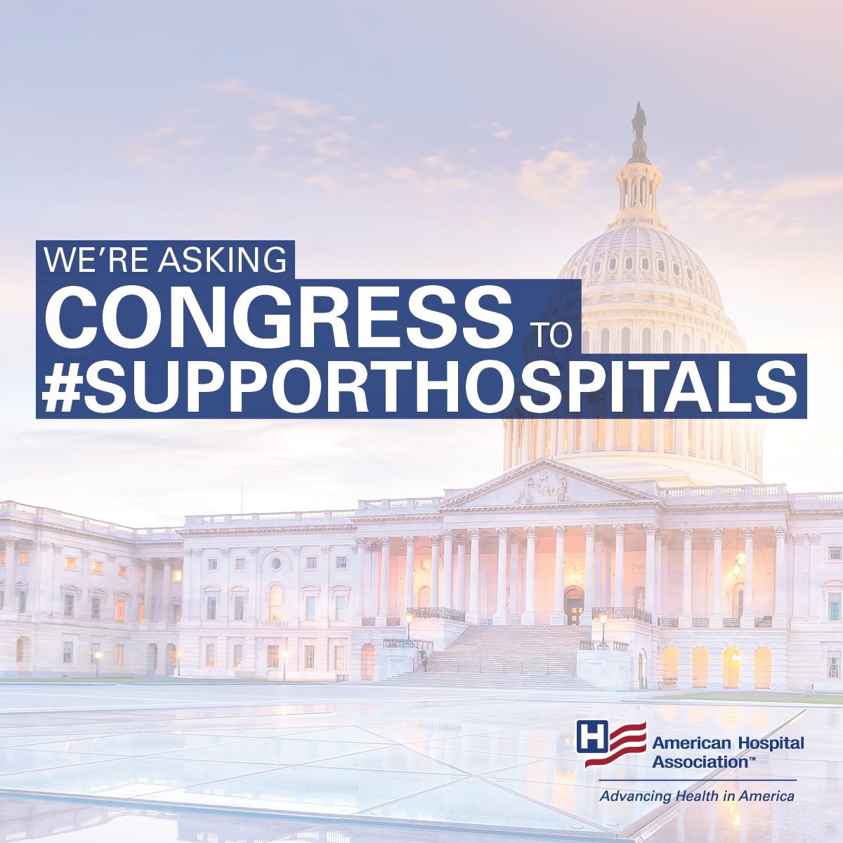 To that end, we have crafted messages and graphics for you to use across your organization’s social media platforms. Remember to tag your members of Congress and @AHAadvocacy and use #SupportHospitals in all your messages.